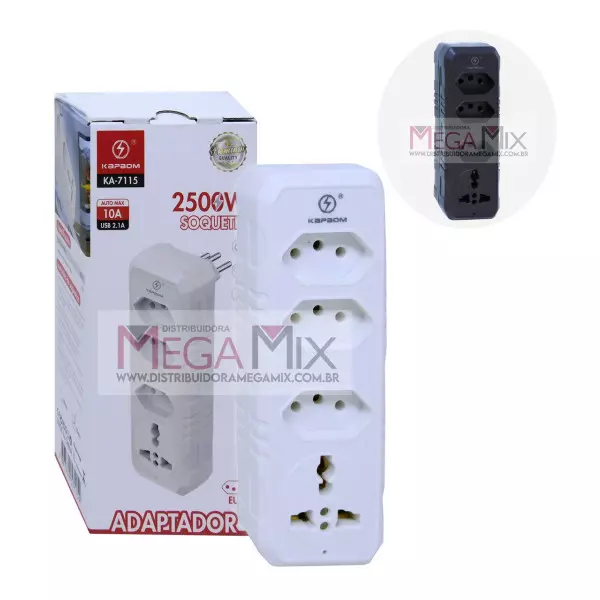 Adaptador de Tomada Tripolar + 1 Universal KA-7115 - Kapbom