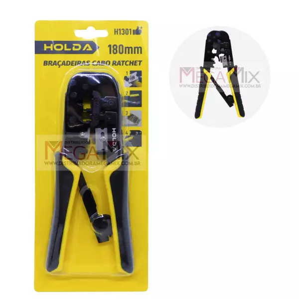 Alicate de Crimpar com Catraca para RJ11 RJ12 RJ45-8P6P H1301 - Holda