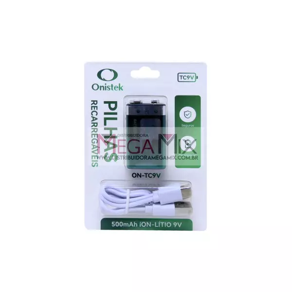 Bateria 9V Recarregável USB-C 500mAh ON-TC9V - Onistek