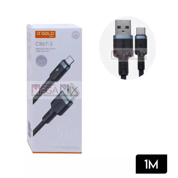 Cabo de Dados USB + Tipo C 5.0A 1M CB67-3 - A'Gold