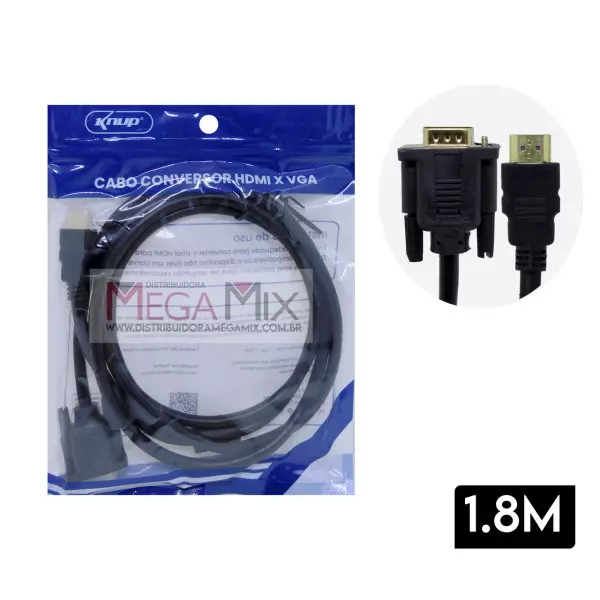 Cabo VGA para HDMI 1.8M KP-YP5028 - Knup