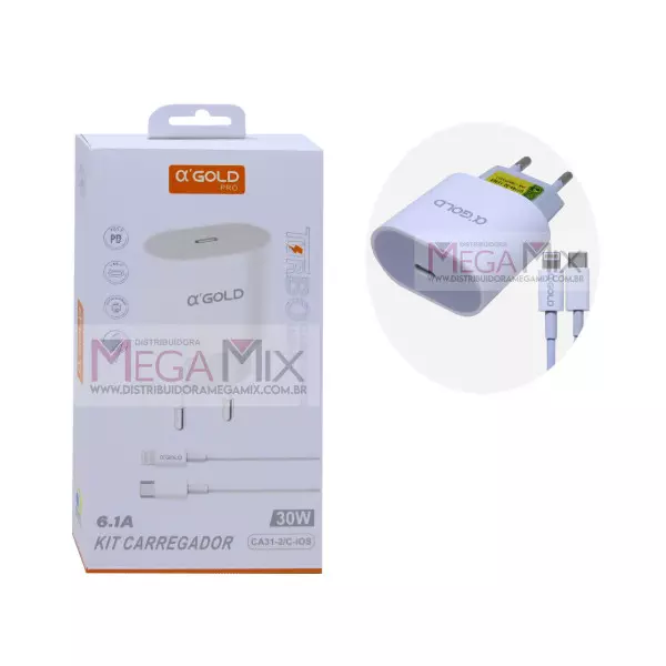 Carregador USB-C para Iphone 30W 6.1A CA31-2/C-IOS - A'Gold