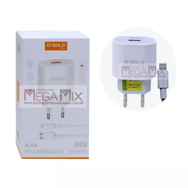 Carregador USB para Iphone 30W 6.1A CA31-6/IOS - A'Gold