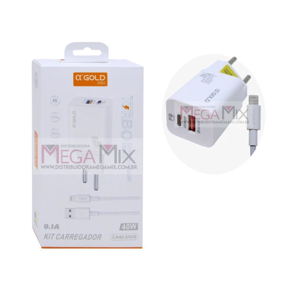 Carregador USB + USB-C para Iphone 40W 9.1A CA42-2/IOS - A'Gold