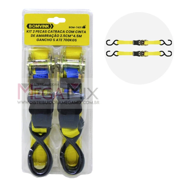 Cinta de Amarração com Catraca 4.5M até 700Kg 2 Peças BOM-7431 - Bomvink