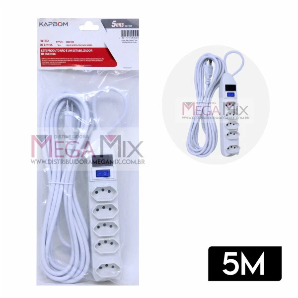 Filtro de Linha 5 Tomadas Bivolt 5M SL7605 - Kapbom