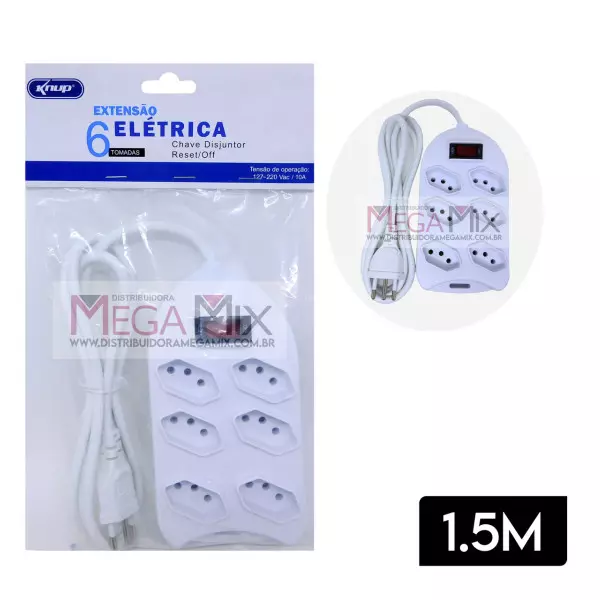 Filtro de Linha 6 Tomadas Bivolt 10A 1,5M SL7506 - Knup
