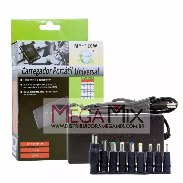 - Potencia de saída: 120 w Máximo Seguintes voltagens: 12v/ 15v /16v / 18v / 19v / 20v / 22v e 24v