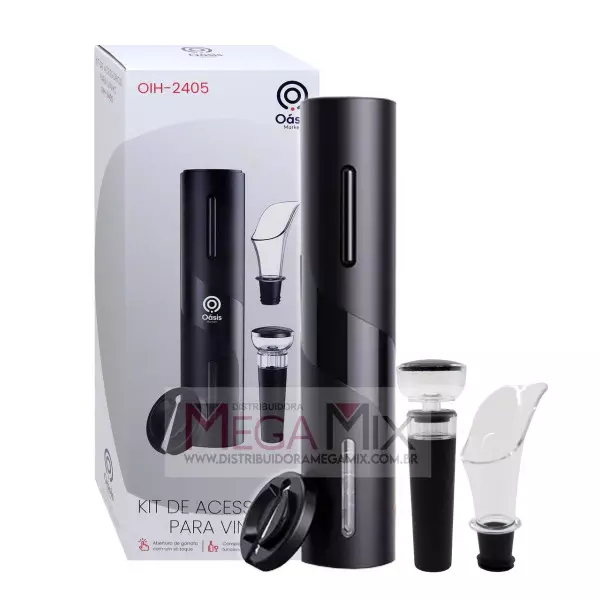 - Materiais principais: Abridor de vinho elétrico: ABS, PC Cortador de lacre: ABS /Bico dosador: TPE para contato com alimentos, acrílico para contato com alimentos.