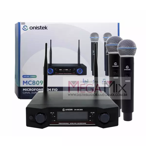 - Display digital nos microfones e na base receptora