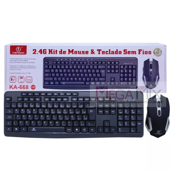 Kit Teclado e Mouse sem Fio KA-668 B - Kapbom