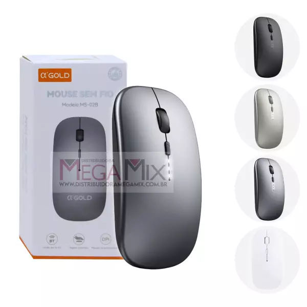 Mouse Sem Fio Bluetooth 1600DPI MS-02B - A'Gold