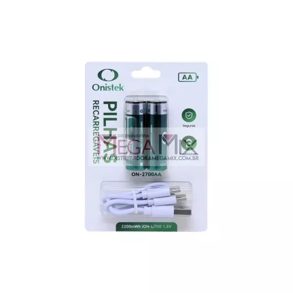 Pilha AA Recarregável USB-C c/2 2200mAh ON-2700AA - Onistek