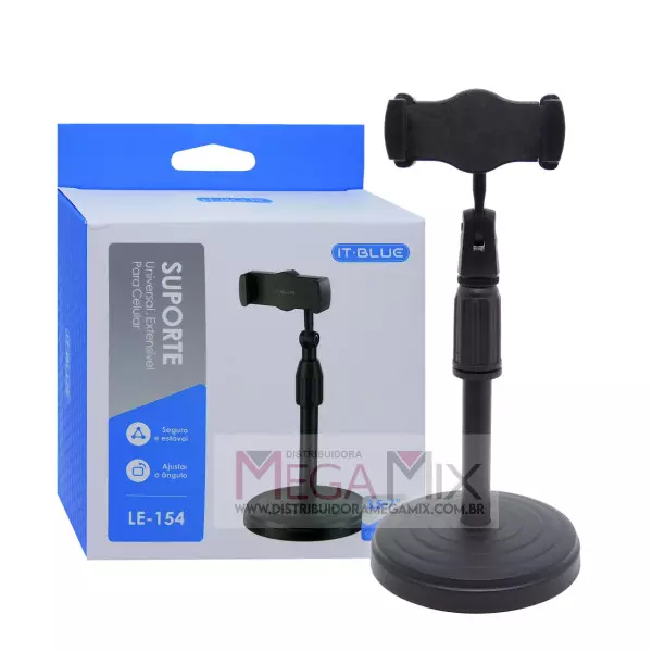 - Projetado para segurar celulares com telas entre 3.5 e 7 polegadas